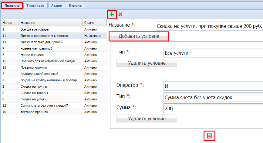 После этого правило можно использовать для настройки скидочной карты, акции, постоянной скидки или надбавки.