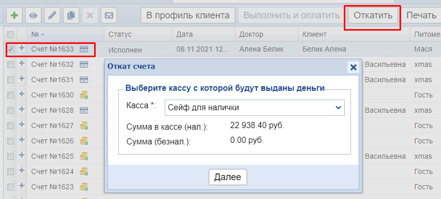 Как исправить выполненный счет: как изменить питомца, доктора, сумму или тип оплаты (наличными или безналичными). Что делать, если клиент хочет вернуть купленный товар.