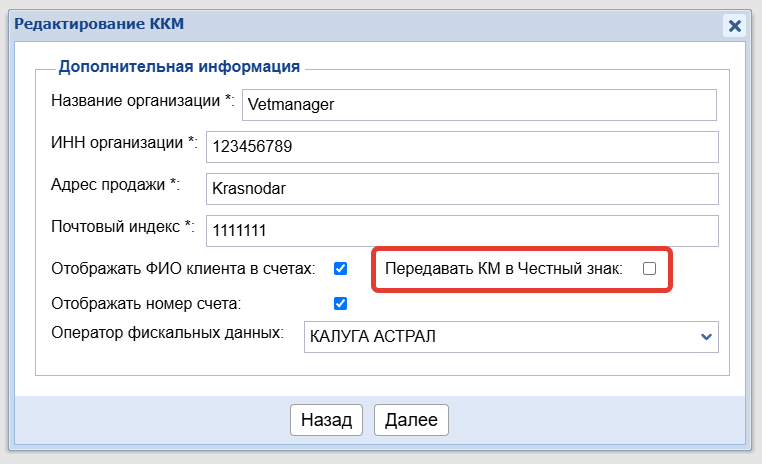После этих настроек можно работать с маркированными товарами в Ветменеджер.