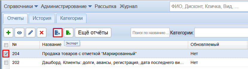 Шаг 1. Экспорт отчета (выгрузка)