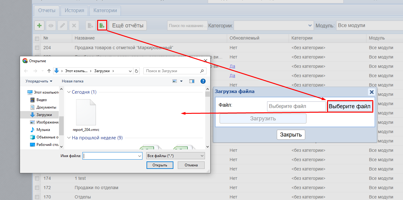 4. Выберите ранее сохранённый файл отчета с ПК.