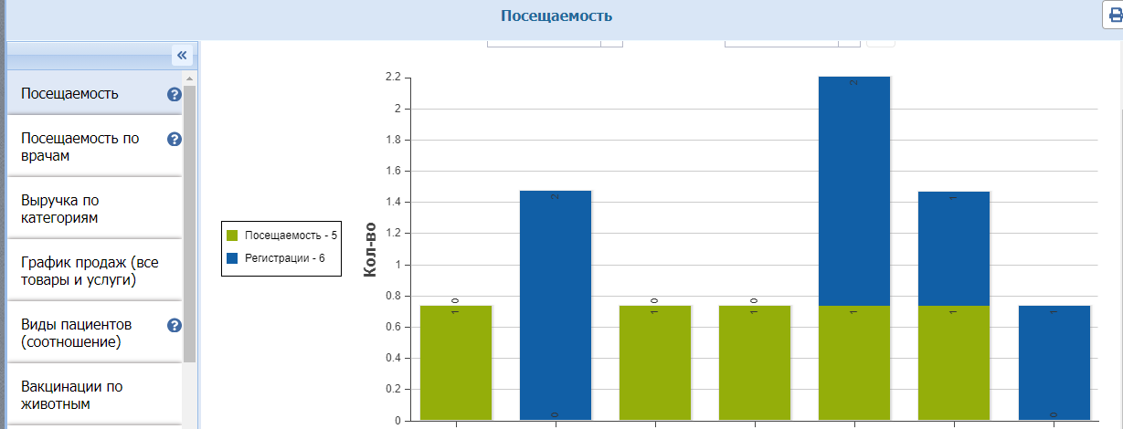 • Посещаемость по врачам