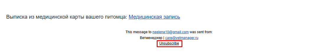 Клиент отписался от рассылок, нажав кнопку Unsubscribe в одном из предыдущих писем от клиники.