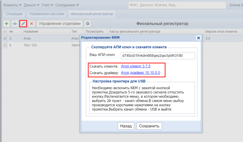 - Скачайте драйверы (там же, где скачивали актуальную версию Атол-клиента).