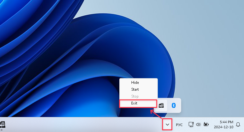 - Нажмите на него правой кнопкой мыши и выберите “exit”.