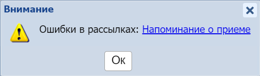 Такое сообщение появляется при входе в программу (только пользователям с ролью Админы) и при условии, что за 3 дня как минимум 80% сообщений в рассылках с ошибками.