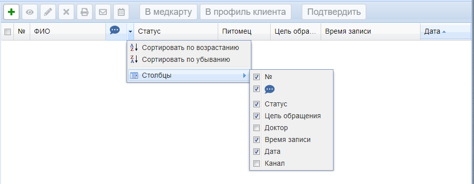 После нажатия на кнопку Подтвердить и сохранить запись меняет статус на Запланирована. Далее с ней можно работать, как с обычными записями на прием.