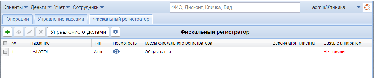 Во вкладке Фискальный регистратор можно настроить интеграцию с фискальником или отредактировать данные. Программа работает с фискальными регистраторами марки Атол и Эвотор (РФ).