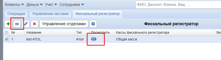 Здесь можно посмотреть детали операций по фискальному регистратору, выделив строку и нажав кнопку Просмотр.