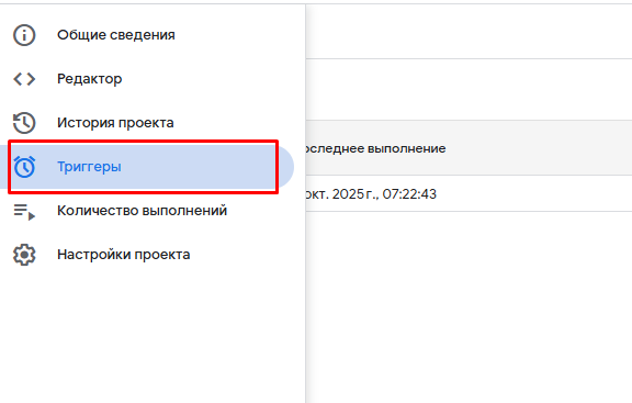 6. Назначаем расписание выполнения скрипта 1 раз в сутки. Для этого переходим в раздел «Триггеры»