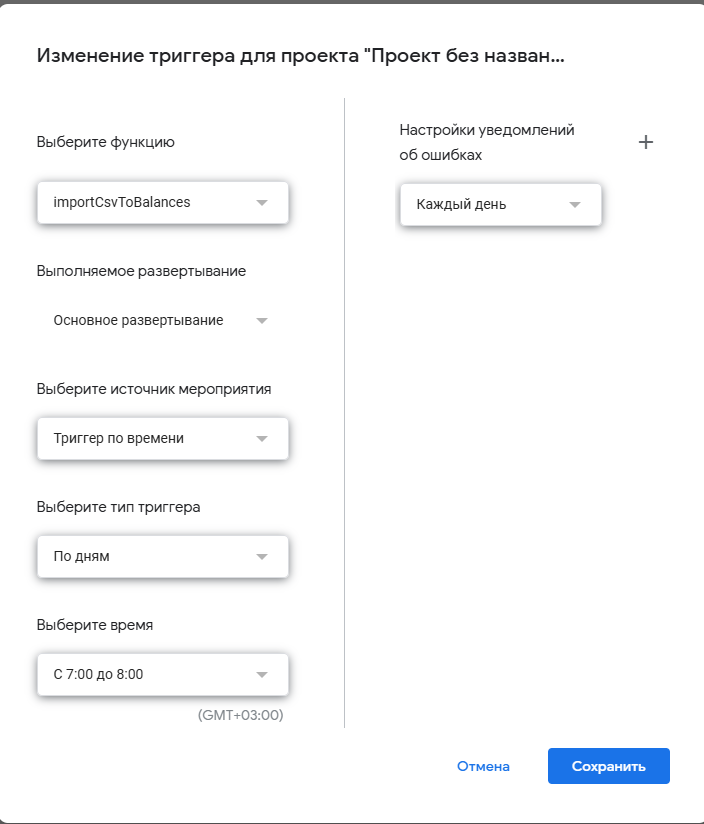 Скрипт от нашего интегратора будет полезен, если в вашей базе от 10 до 100 тысяч клиентов — при большем объеме срабатывает ограничение Google (6 минут на выполнение скрипта).