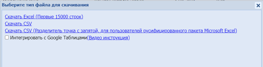 Выберите подходящий тип файла для скачивания данных отчета (например, самый распространенный вариант - первый в списке - скачать в Excel).