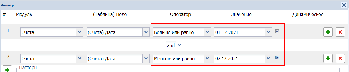 Паттерн задает в каком порядке программа будет рассматривать логические операторы между критериями. В нашем примере паттерн имеет следующий вид «((1 и 2) или 3)», это означает что программа найдет все товары у которых Категория не пусто или проверит обязательность выполнения критериев 1 и 2.