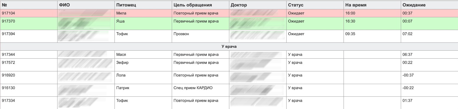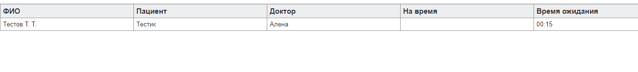 Можно на отдельный экран вывести отображение очереди, идентичное вкладке Ожидают (с сортировкой по времени, цветовым разграничением). Такую электронную очередь можно вывести на мониторы для врачей и медперсонала.