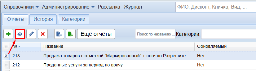 После этого отчет загрузится в программу. Чтобы его сформировать, выделите его и нажмите кнопку Просмотр.