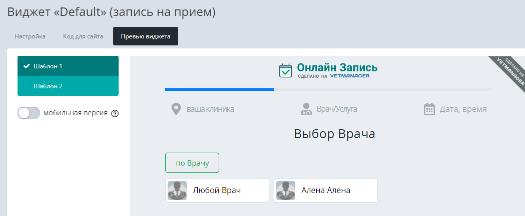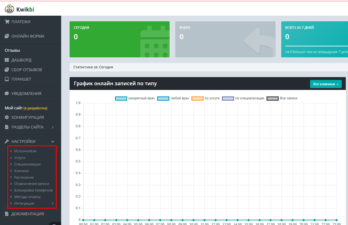 • мой сайт (если у вас нет сайта клиники, здесь вы сможете его быстро создать и настроить)