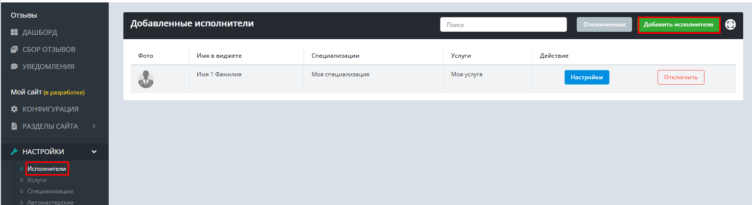 Перейдите в Настройки — Исполнители. Чтобы добавить исполнителей, нажмите кнопку "Добавить исполнителя"