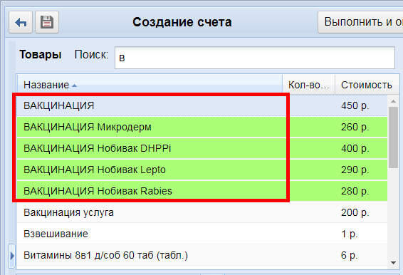 Выбрав нужный товар/услугу, подтвердите клавишей Enter (или кликните мышкой по строке с данным товаром)