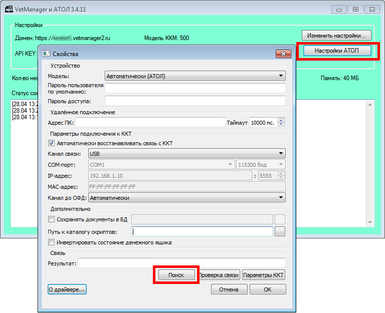 Чтобы начать работу с регистратором в Ветменеджере, после подключения регистратора к ПК нужно произвести настройку: