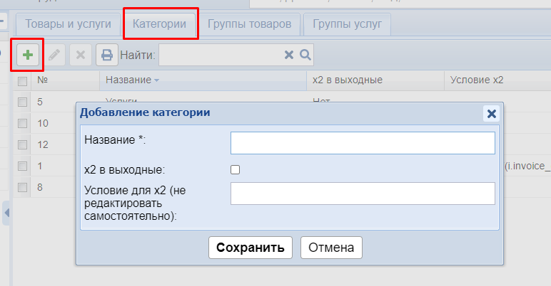 Переходим в Учет — модуль Товары и услуги — вкладка Категории — через Зеленый плюс добавляем новую категорию.