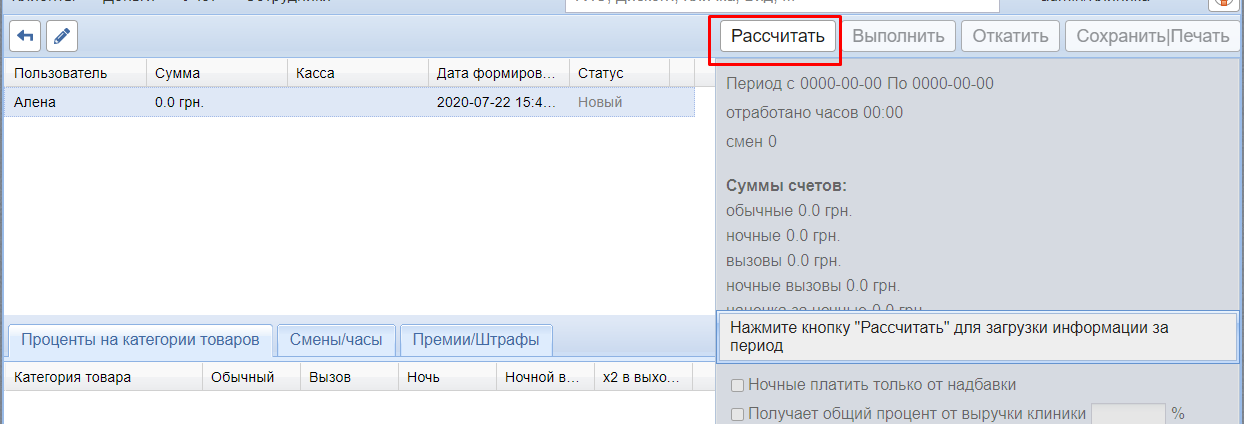 Когда все категории заведены, нужно назначить % сотрудника на каждую категорию.
