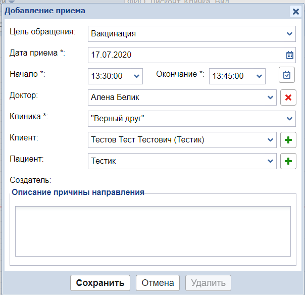 Когда клиент по запланированной записи приходит в клинику, нужно его найти в Календаре и Направить на прием.