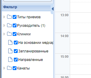 Если запись создали, но не видите ее в календаре, нужно проверить фильтры модуля.