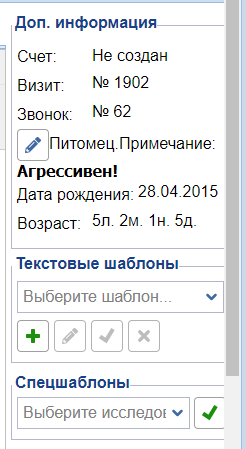 • Примечание — если по питомцу заполнено примечание, то оно будет отображаться здесь