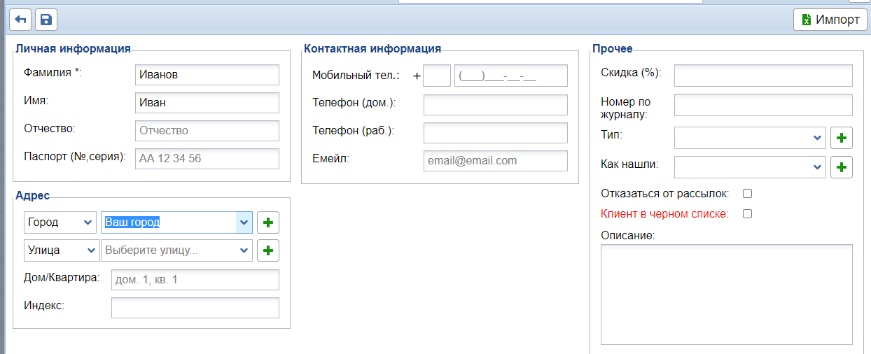 Клиентов  в программу можно заводить вручную, а можно импортировать списком, если такой имеется в электронном виде. Опишем подробнее, как это делается.