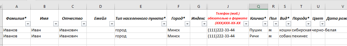 Тогда программа при импорте создаст одного клиента с двумя питомцами.