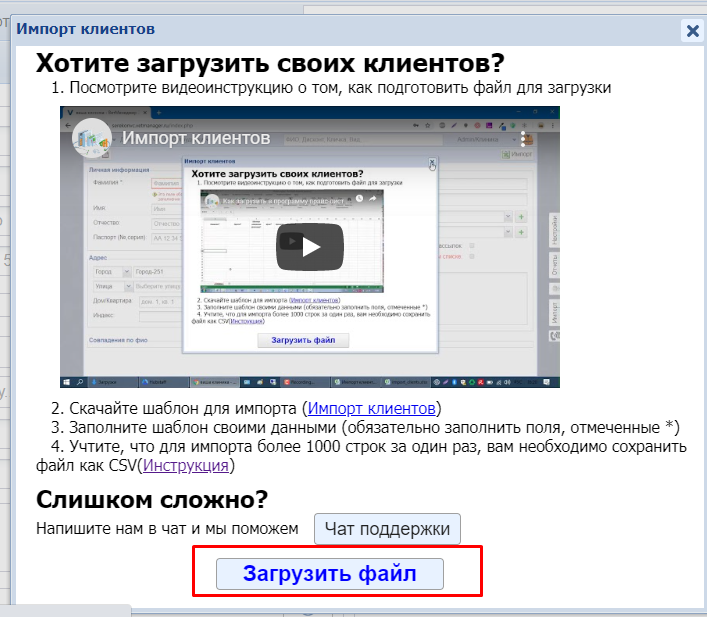 В открывшемся окне нужно скачать наш шаблон для импорта клиентов.