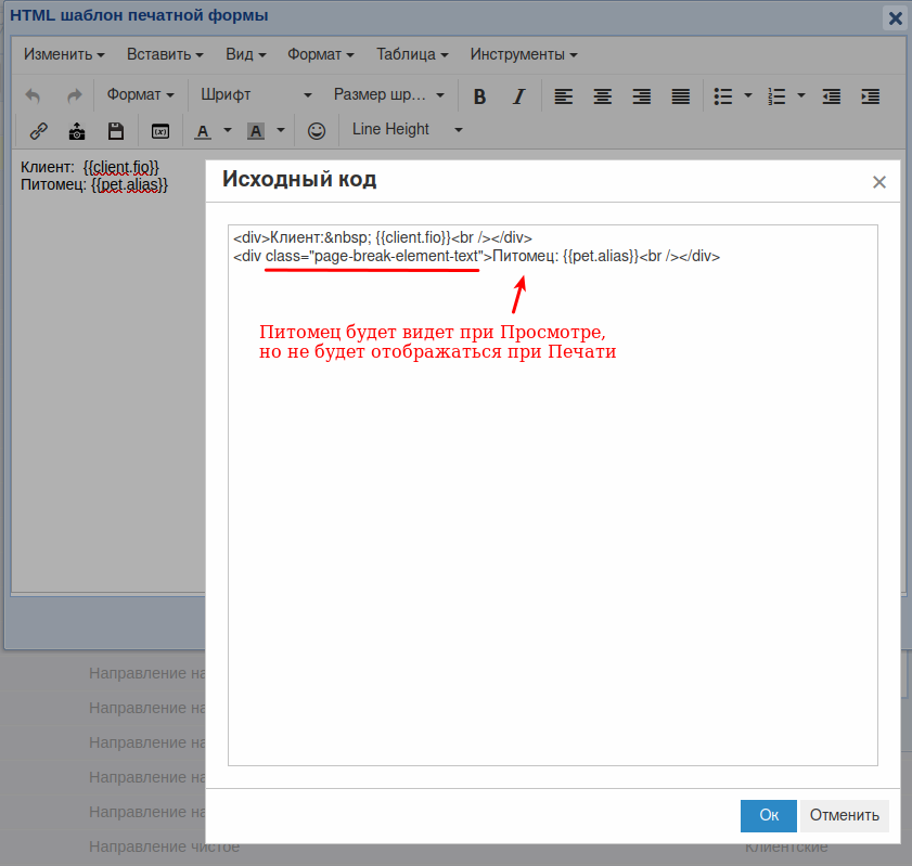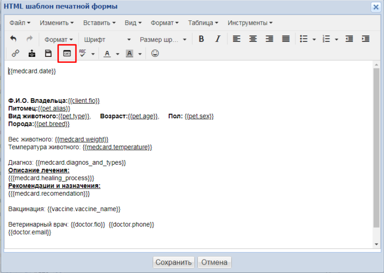 Если нужно, чтобы в форму подтягивались данные из программы (например, ФИО клиента, данные по питомцу), используйте переменные.