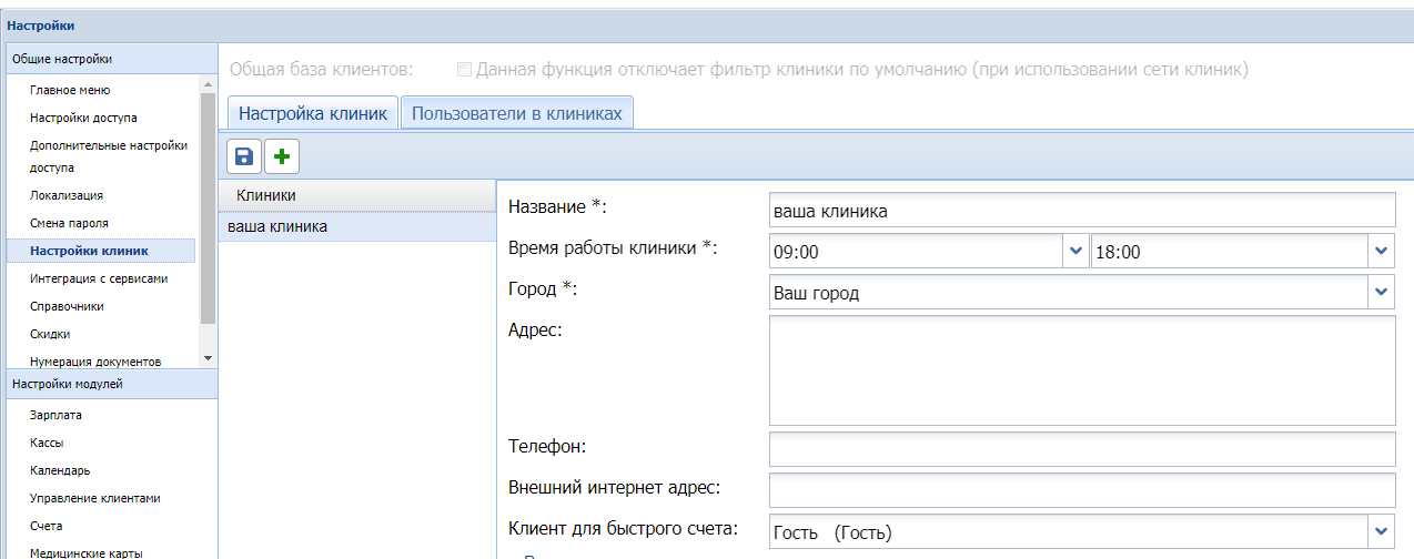 С этого момента можно сказать, что программа настроена индивидуально под вашу клинику.