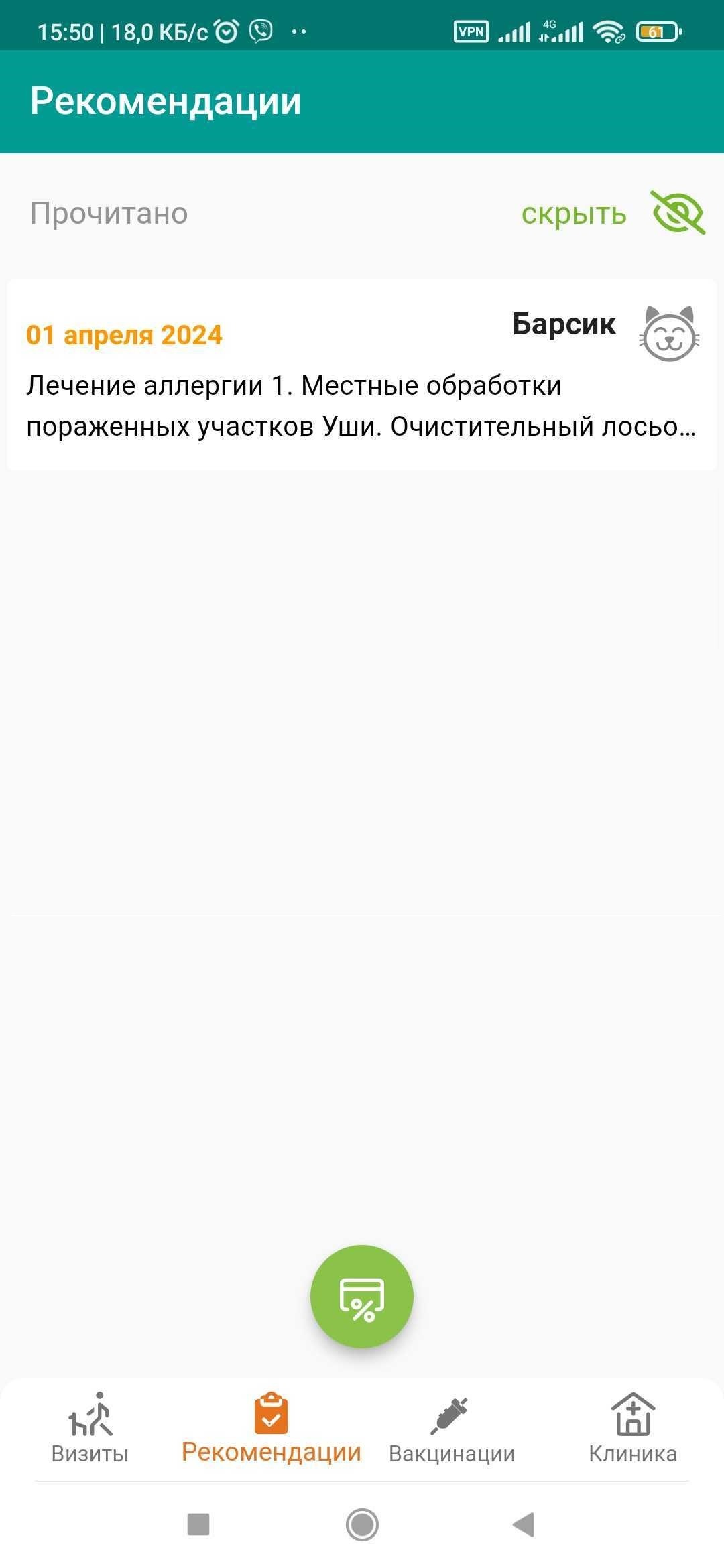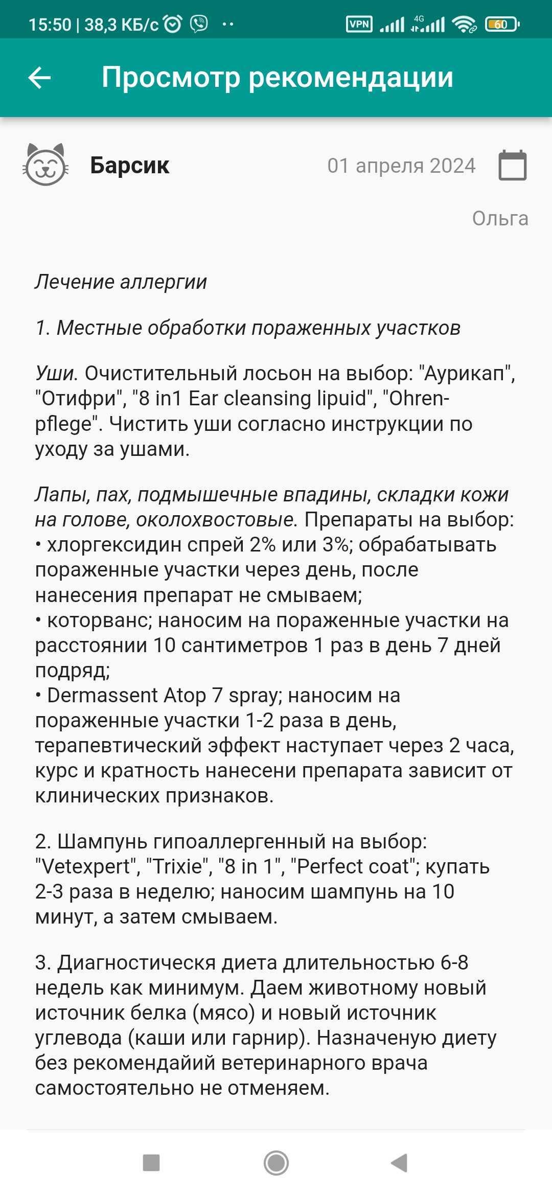 • рекомендации и назначения для своего питомца (будут доступны для просмотра вкладка "Рекомендации и назначения" из медкарт);
