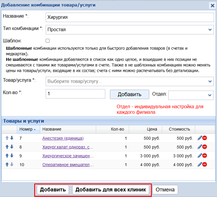Данная возможность доступна только для обычных (не шаблонных) комбинаций.