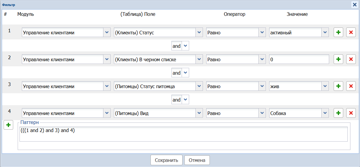 Также можете добавить фильтры по статусу клиента, как описано в предыдущих примерах.