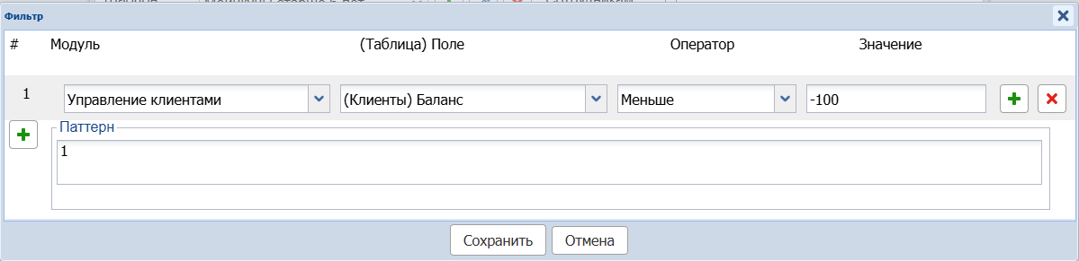 В данном случае клиенту уйдет сообщение если его долг больше 100 руб. Цифру в поле значение можете установить любую (чтобы в рассылку попали только должники, устанавливайте цифру с минусом; перед отправкой проверьте выборочно фамилии в списке и убедитесь, что у них действительно имеется долг в программе).