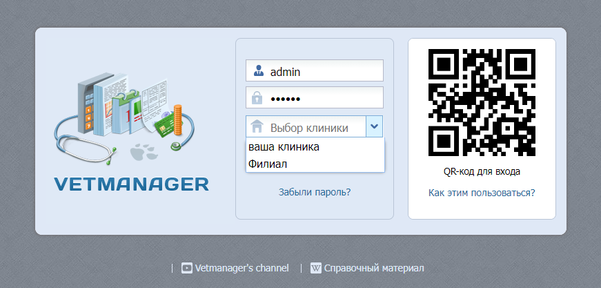 Если у вас несколько филиалов, в них можно работать в рамках одного домена. Для этого в программе Ветменеджер реализован функционал Сеть клиник. Все сотрудники всех филиалов будут заходить в программу под одним адресом, при входе можно будет выбрать клинику, в которую у пользователя есть доступ.