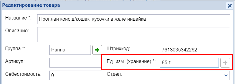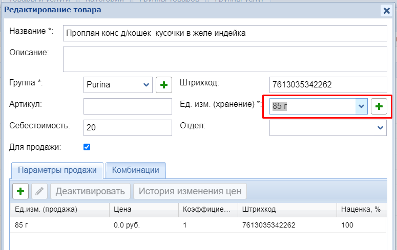 Если у такого товара все-таки нужно изменить единицу хранения, то это делается следующим образом: