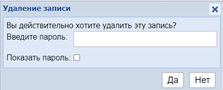 Появится окно "Удаление записи". В нем нужно ввести свой пароль от программы и нажать "Да".
