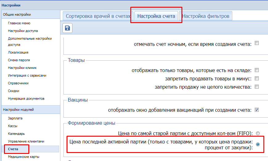 При необходимости, в настройках можно указать, чтобы цена продажи формировалась по самой последней партии: Настройки — Счета- вкладка Настройки счета — блок Формирование цены — Цена последней активной партии.