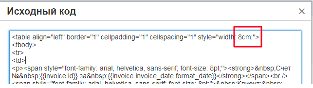 Ширина чека настроена на ширину ленты 8 см. Если нужно изменить ширину, то можно изменить в исходном коде (в самой верхней строке размер 8 см изменить на свой).