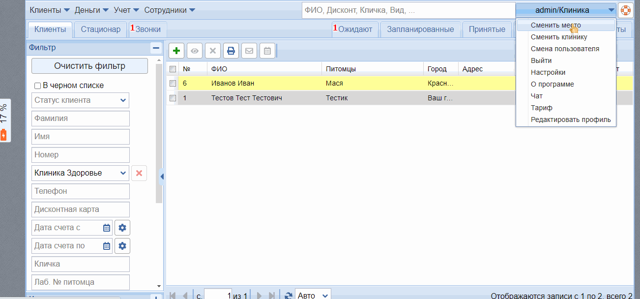 Если вы находитесь в сфере Клиника или другой, то чтобы перейти в Админку, нужно нажать Сменить место. Выбрать Админка. Там перейти в группу модулей Справочники.