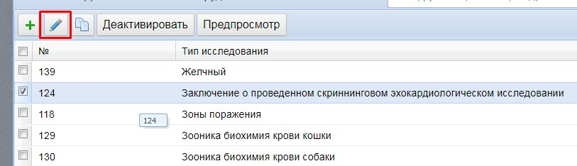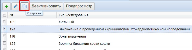 !!!Если шаблон уже использовался в медкартах, то его уже нельзя отредактировать. Нужно его скопировать и в копию внести изменения, а старое исследование деактивировать.
