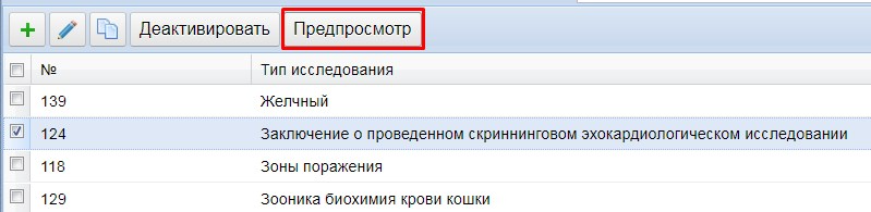 После сохранения можно посмотреть, как будет выглядеть шаблон в карте. Для этого выделите исследование и нажмите кнопку Предпросмотр.