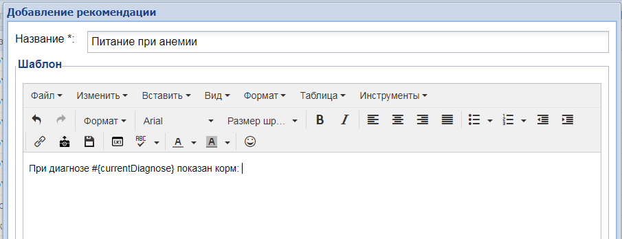 Если нужно подтянуть диагноз, вставляем в текст переменную #{currentDiagnose}