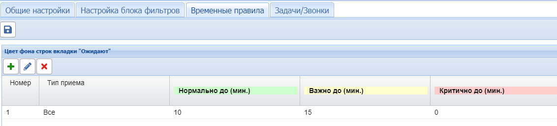 Временные правила — визуальная подсказка для персонала, насколько долго клиент находится в очереди (во вкладке Ожидают).