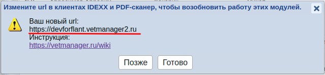 Например, ваш новый url: https://devforflant.vetmanager2.ru