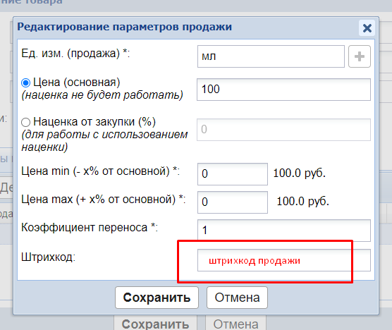1. Если в карточке товара заполнено поле штрихкод хранения, а в параметрах продажи не прописан штрихкод, то в счет будет добавляться товар с первой добавленной единицей продажи.