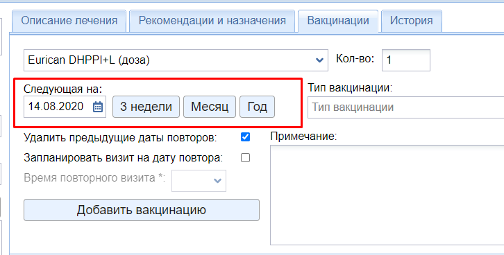 Работайте с вакцинациями эффективно! Если вы проводите вакцинацию, отмечайте дату повтора и работайте с повторными вакцинациями.